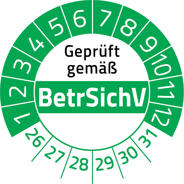 Geprüft gemäß BetrSichV Prüfplakette