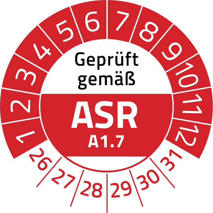 Geprüft gemäß ASR A1.7 Prüfplakette